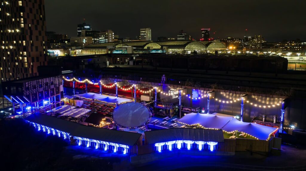 Escape to Freight Island is one of those venues that feels like an event the minute you arrive, a huge, high-energy space built for food, drinks, and atmosphere. Set within Depot Mayfield, it’s designed for big groups, big nights, and easy going drop-ins, with bars, street food, and entertainment all happening under one roof.