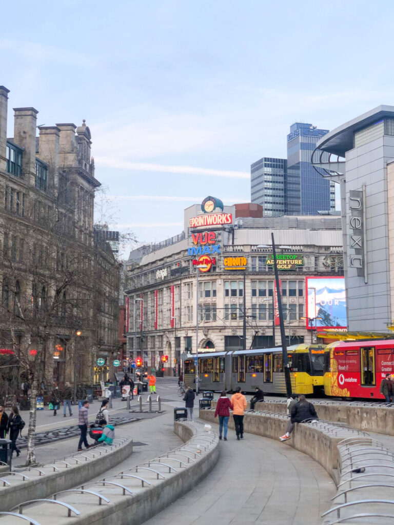 Exchange Square is one of those city centre spaces that makes Manchester feel open and walkable, with a big square atmosphere framed by shops, landmarks, and tram lines. It’s a natural meeting point, especially for anyone heading into the Arndale, Selfridges, or the surrounding retail streets.